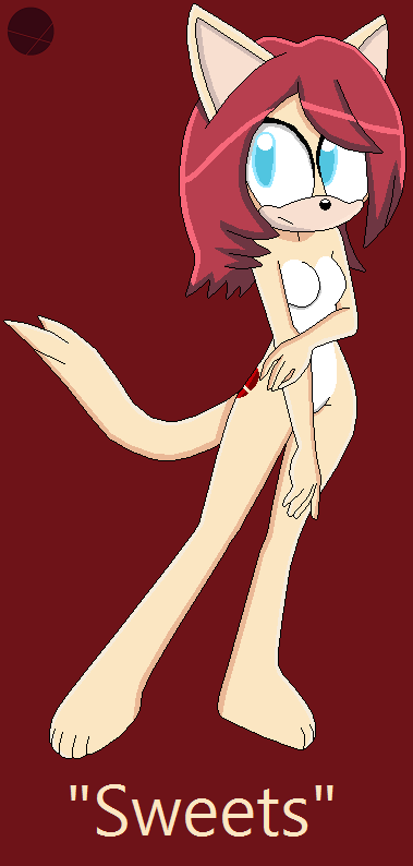 "Sweets" is a peach-yellow, ruby-haired female cat who is unable to speak, is suffering from amnesia and has a flashing, red two-cross circle on her right hip.